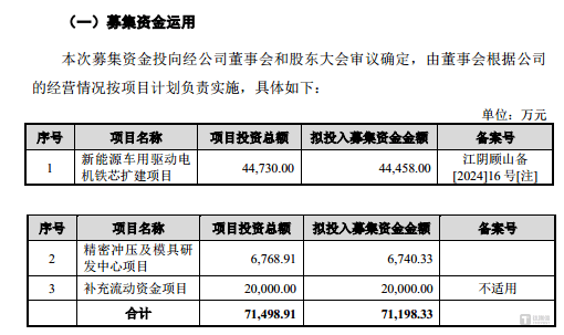 值得一提的是,华新精科此次IPO募资高度聚焦核心业务扩张,拟募集44458万元用于新能源车用驱动电机电芯扩建项目,占募资总额的62.44%,该项目建设完成后,华新精科将实现新增年产新能源车高端驱动电机定转子铁芯100万套(单套产品标准重要约30千克,换算产能约3万吨/年)的生产能力。