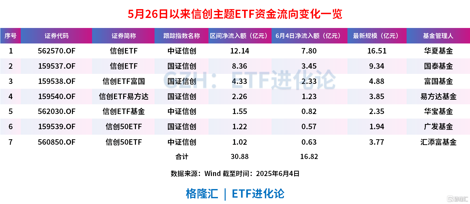 Wind数据显示,市面上7只信创主题ETF从5月26日到6月4日,合计净流入30.88亿元,其中仅昨日的单日净流入规模就高达16.82亿元,占比超54%。
