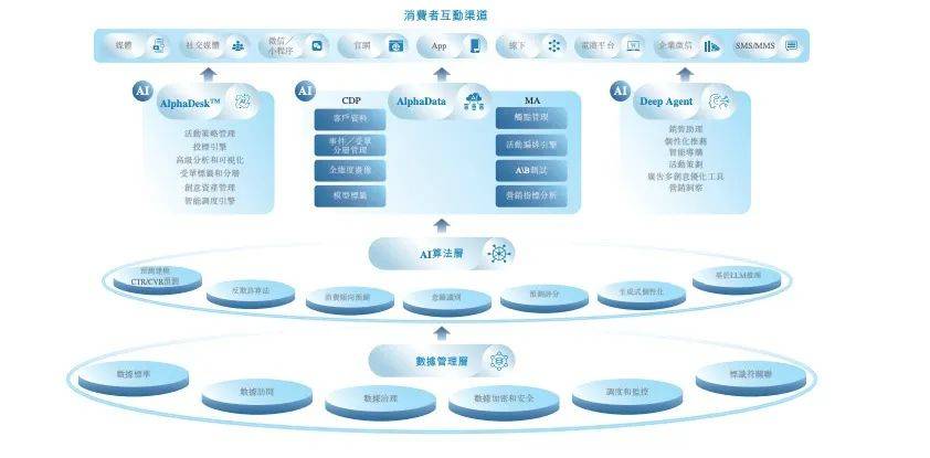 其中,智能广告投放业务以其广告投放AI决策平台AlphaDesk为中心,智能管理数据依托CRM AI决策平台AlphaData提供支持。