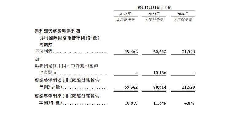 2022年至2024年,公司净利润分别为0.594亿元、0.607亿元及0.215亿元;经调整净利润(非《国际财务报告准则》计量)则分别为0.594亿元、0.708亿元及0.215亿元。
