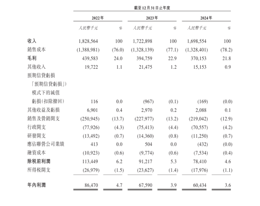 据招股书显示,2022年至2024年,凯诘电商营业收入和净利润连续三年下降。具体而言,在过去的2022年、2023年和2024年,凯诘电商的营业收入分别为18.29亿、17.23亿和16.99亿元,相应的净利润分别为8647万、6759万和6043.4万元。