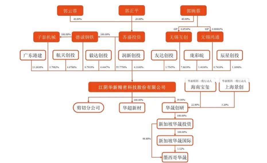 华新精科实际控制人为郭正平、郭云蓉、郭婉蓉。本次发行前,三位实际控制人通过直接及间接持股的方式合计控制公司68.97%的表决权股份,对公司绝对控股。