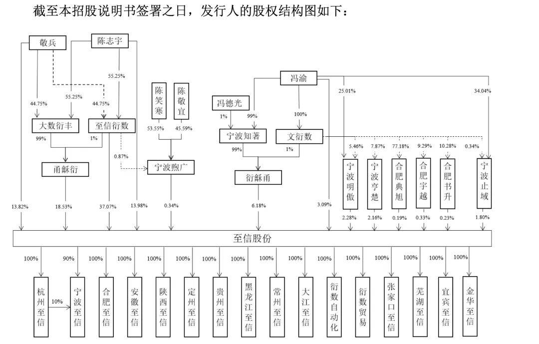 股权方面,至信衍数直接持有公司37.07%的股份,并通过甬龢衍和宁波煦广间接控制公司18.87%的股份,合计控制公司55.94%的股份,为公司的控股股东。公司实际控制人为陈志宇与敬兵,陈志宇与敬兵系夫妻关系,二人累计控制的公司表决权比例为83.75%。