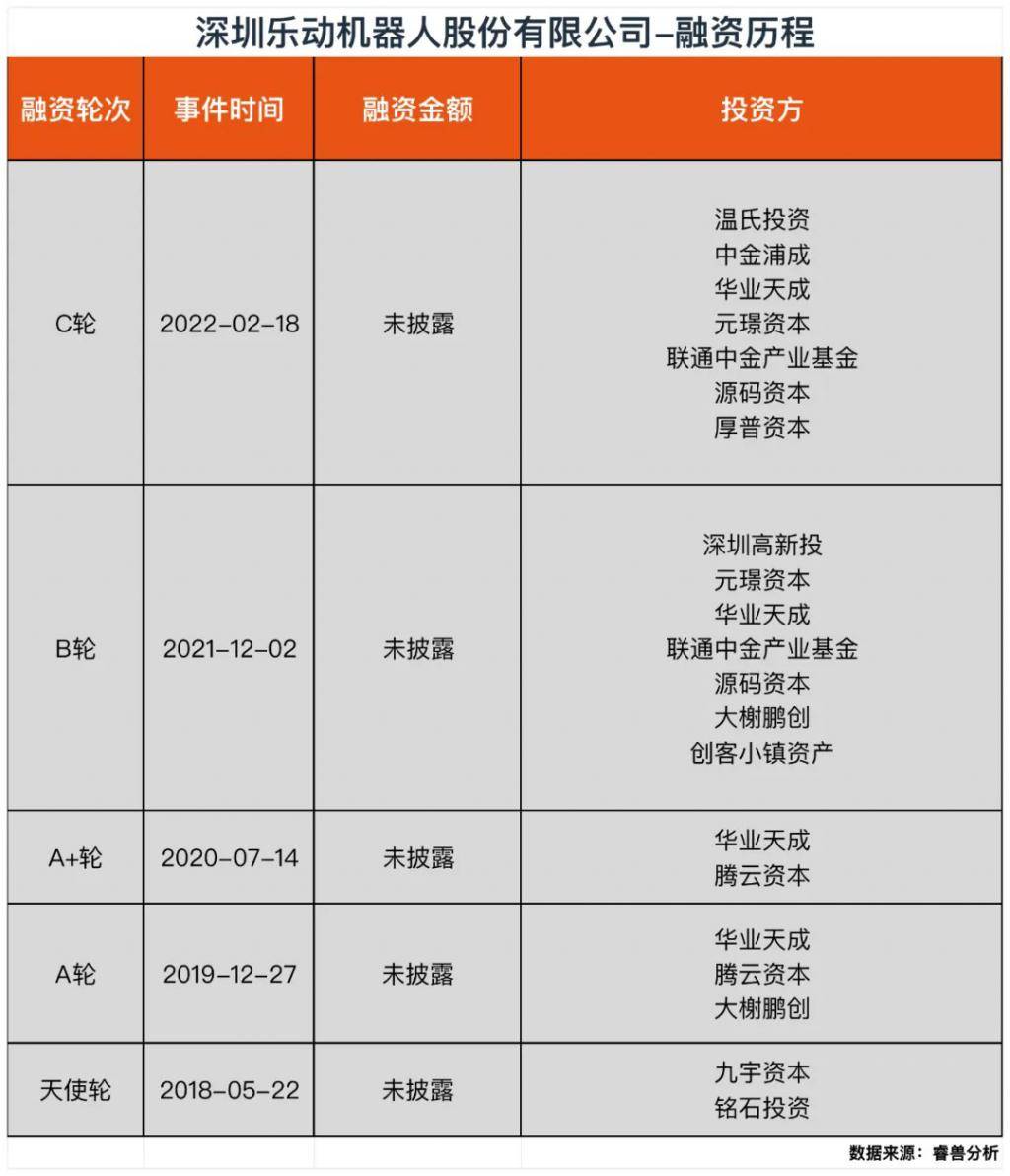 根据乐动机器人招股书,公司在发展进程中经历多轮融资,参与投资的机构包括华业天成、源码资本、元璟资本、联通中金、深圳市高新投、中金浦成、西藏万青等。
