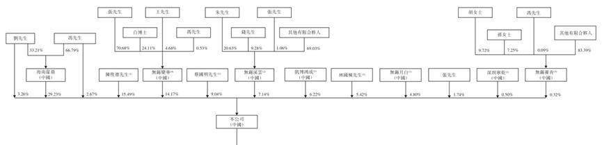 截止递表,果下科技由海南虚鼎、无锡栾华、无锡溪云、无锡霁青分别持股29.23%、14.17%、7.14%及0.32%,这四家企业均由冯立正、刘子叶、张晰控制,另外3人还分别直接持有2.67%、3.26%及1.74%的股权。