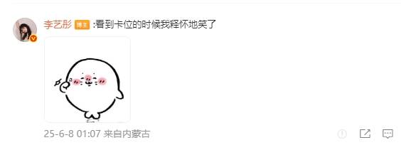 随后,李艺彤在评论区表示:“看到卡位的时候我释怀地笑了。”