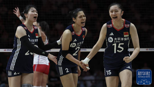 人民网北京6月8日电 (记者胡雪蓉)6月7日,2025年世界女排联赛中国北京站进入到第四个比赛日。中国女排3:0完胜法国女排,三局比分是25:17、25:18和25:11。