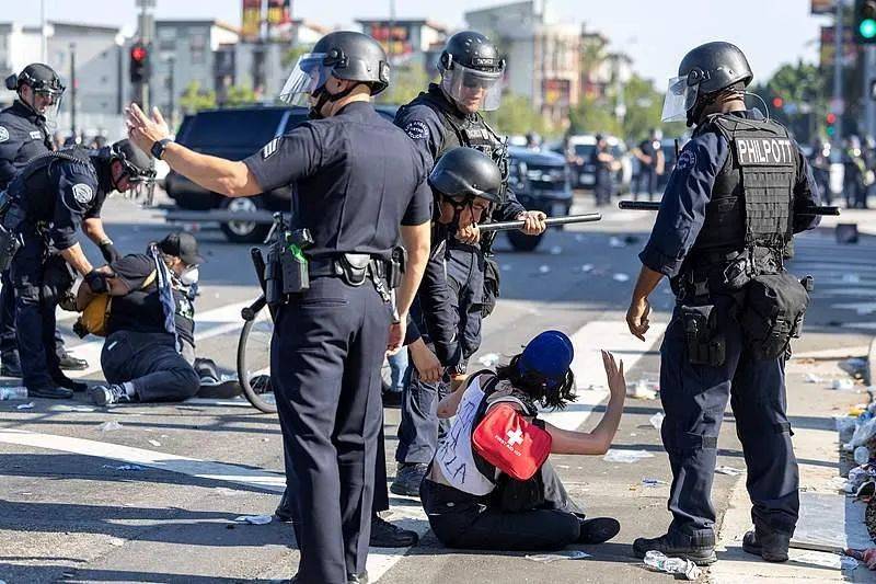 自6日上午开始,美国移民与海关执法局等联邦机构连续出动大批执法人员,在加州洛杉矶县多地展开针对非法移民的执法行动。行动中,执法人员遭到当地社区居民围堵,不断发生肢体冲突。
