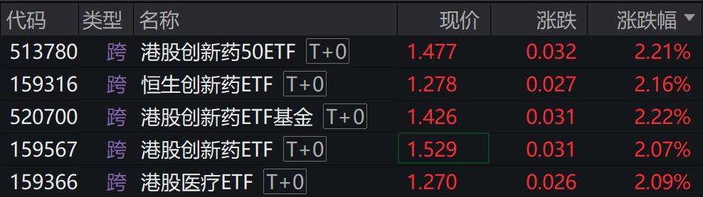 受盘面影响,多只港股创新药相关ETF涨超2%。