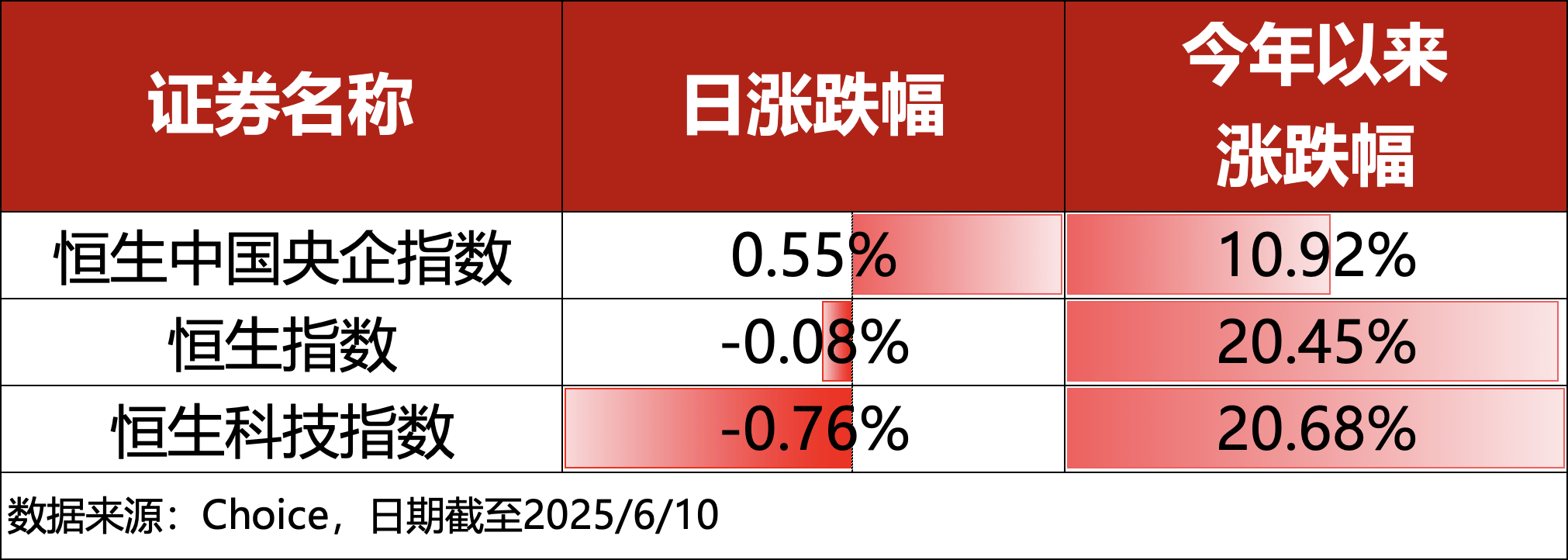 港股主流指数涨跌不一。其中,恒生中国央企指数上涨0.55%,涨幅相对领先。南向资金全天净买入75.90亿港元。