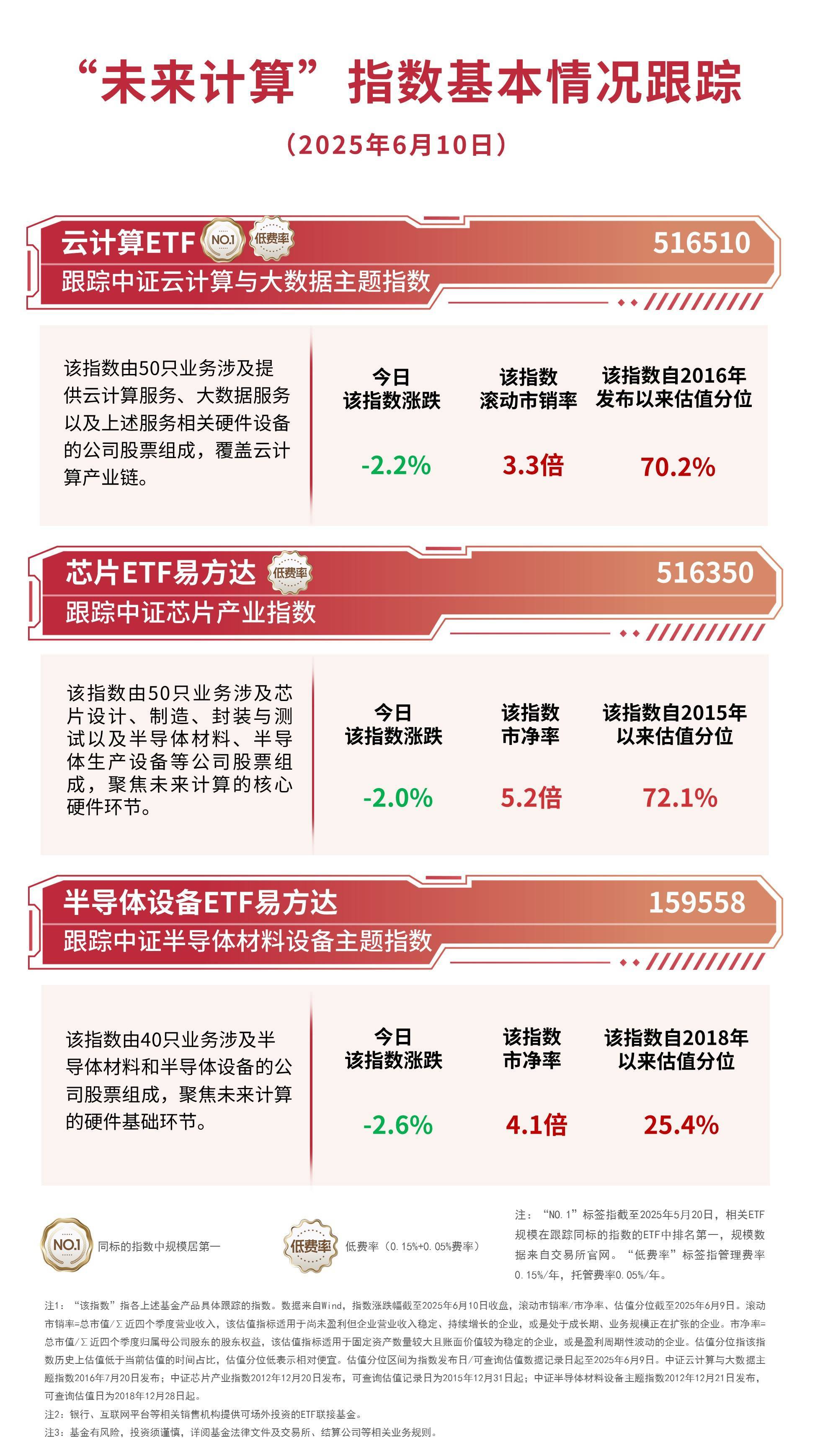 截至收盘,中证云计算与大数据主题指数下跌2.2%,中证芯片产业指数下跌2%,中证半导体材料设备主题指数下跌2.6%。