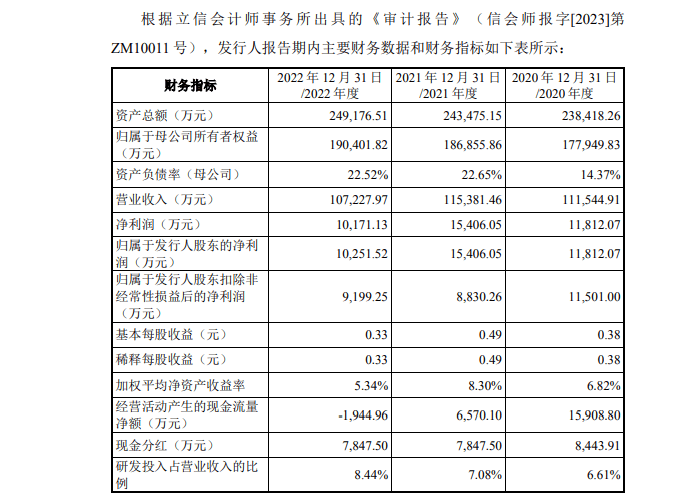 研发费用及占比均不超2022年,2020至2022年现金分红占比高达64%