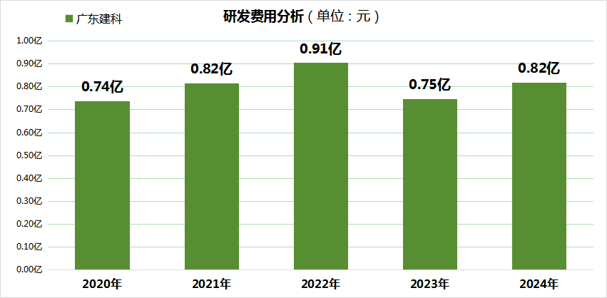 从研发费用方面来看,广东建科在2022年达到峰值为0.91亿元,此后呈现下降趋势,到2024年研发费用降至0.82亿元。同时,2022至2024年,广东建科的研发费用占营业收入的比例分别为8.44%、6.48%和6.85%,也始终未超过2022年的峰值水平。
