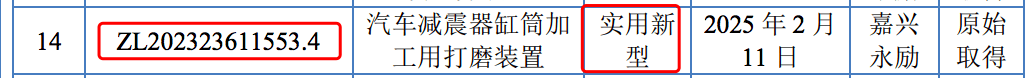 另外挖贝研究院注意到,永励精密是一家典型的家族企业,王兴海及3个女儿、2个女婿等直属亲属与直系姻亲在公司担任董事长、总经理等多个重要职务,在6名非独立董事中占4席,共计控制95%股份表决权。信披方面,公司招股书在“创新特征”部分与“专利表”部分,出现专利号相同专利既属于“发明专利”、又属于“实用新型专利”情形。
