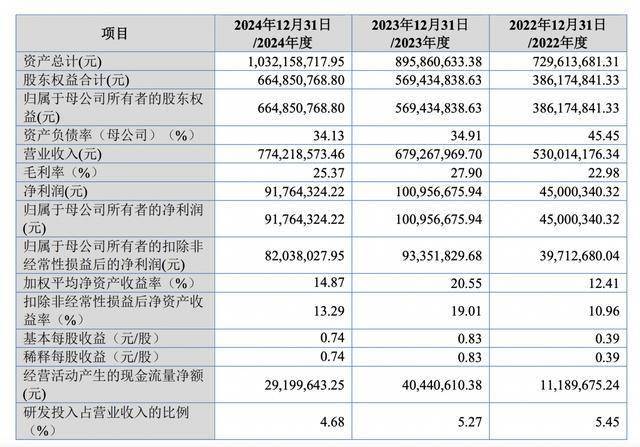 2022年至2024年,新恒泰营业收入分别为5.3亿元、6.79亿元、7.74亿元,净利润分别为4500.03万元、1.01亿元、9176.43万元,毛利率分别为22.98%、27.9%、25.37%。