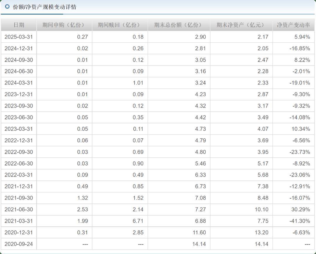 基金业绩下降,基金规模自然会出现下降。华泰柏瑞优势领航混合A基金成立之初募集了14.14亿元,但成立后不久基金规模出现下降,2020年4季度被赎回2.85亿元,2021年1季度被赎回6.71亿份,2021年2季度被赎回2.14亿份,2021年3季度被赎回1.52亿份。截至2025年3月31日,华泰柏瑞优势领航混合A,期末净资产2.17亿元,比上期增加5.94%。
