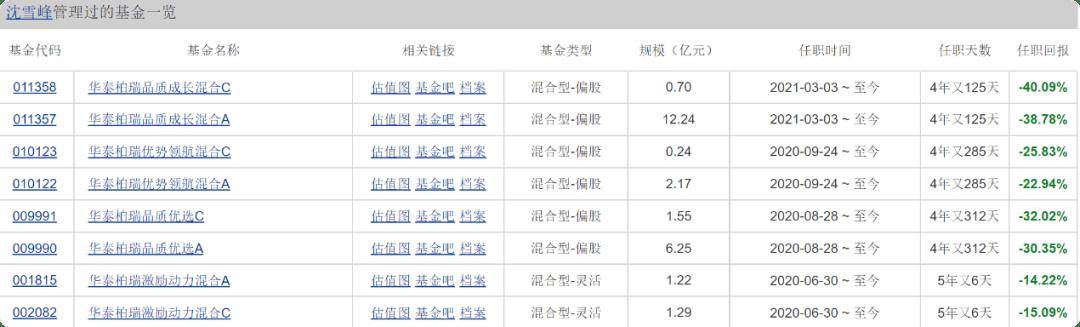 近日,笔者发现,华泰柏瑞基金管理有限公司(简称华泰柏瑞基金)旗下基金经理沈雪峰业绩并不理想,目前所在管的4只基金都出现亏损,华泰柏瑞品质成长混合A/C管理长达4年又125天,任职回报却-38.78%、-40.09%。基金经理业绩下滑,一般与基金公司自身管理有关。