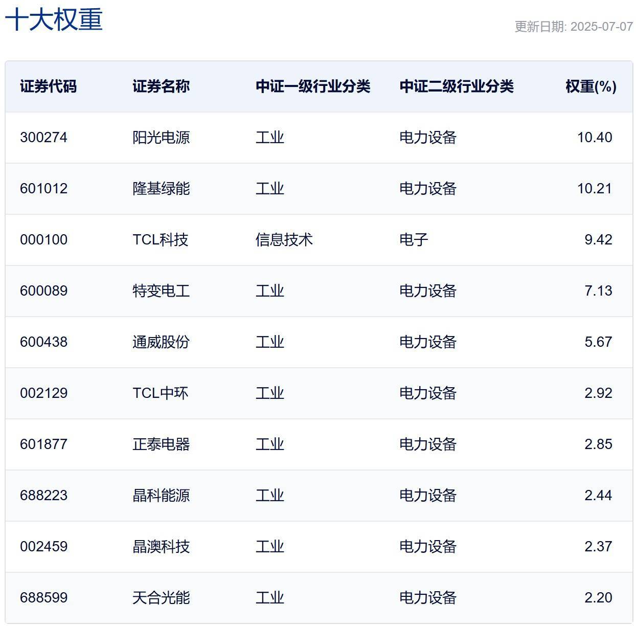 中证光伏产业指数从主营业务涉及光伏产业链上、中、下游的上市公司证券中,选取不超过50只最具代表性的上市公司证券作为指数样本,以反映光伏产业上市公司证券的整体表现。