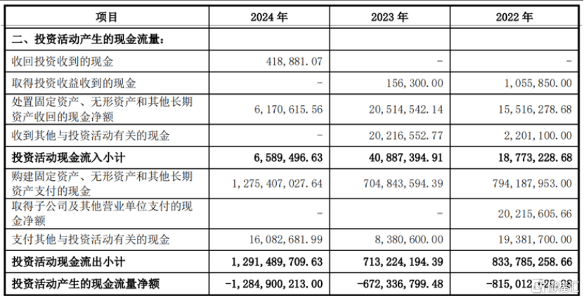 值得注意的是,PCB行业是资本密集型行业,2024年年底,超颖电子的固定资产高达34.27亿元,近三年投资活动用掉的现金流量净额累计高达27.7亿元。