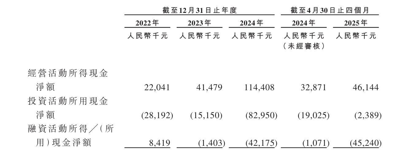 2025年前四个月,公司账面现金及等价物仅剩2.74亿元,而同期融资活动净流出4524万元,主要用于偿还关联方借款和派息。若上市融资不及预期,后续产能扩张计划或被迫放缓。
