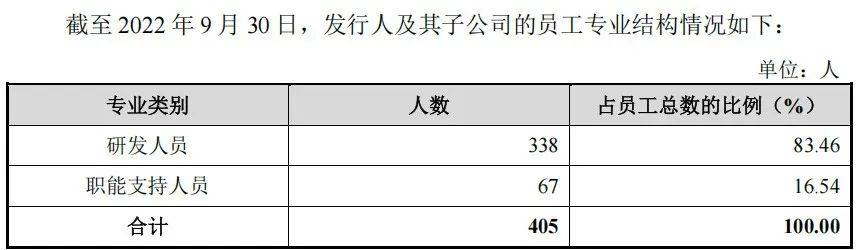 然而,招股书等资料显示,截至2022年9月30日,轩竹生物的研发人员达到338名,占员工总数的83.46%,包括16名博士、139名硕士,142名本科生,41名本科及以下成员。