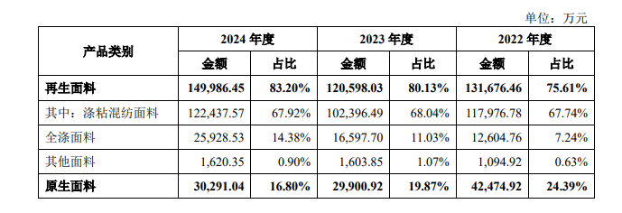作为对比,2023年和2024年,福恩股份再生色纺面料的销量分别为3200余万米和4300余万米。