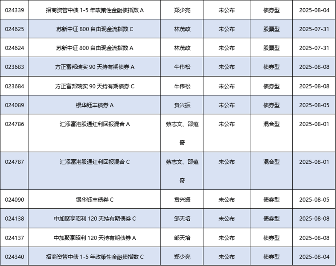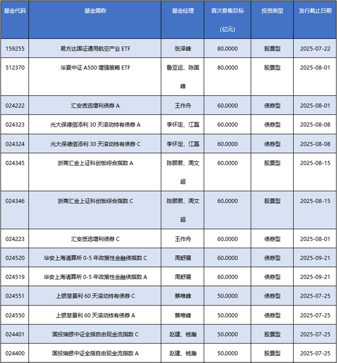 五、 上周(7.21-7.25)新发基金一览(不包含传统封闭式基金)