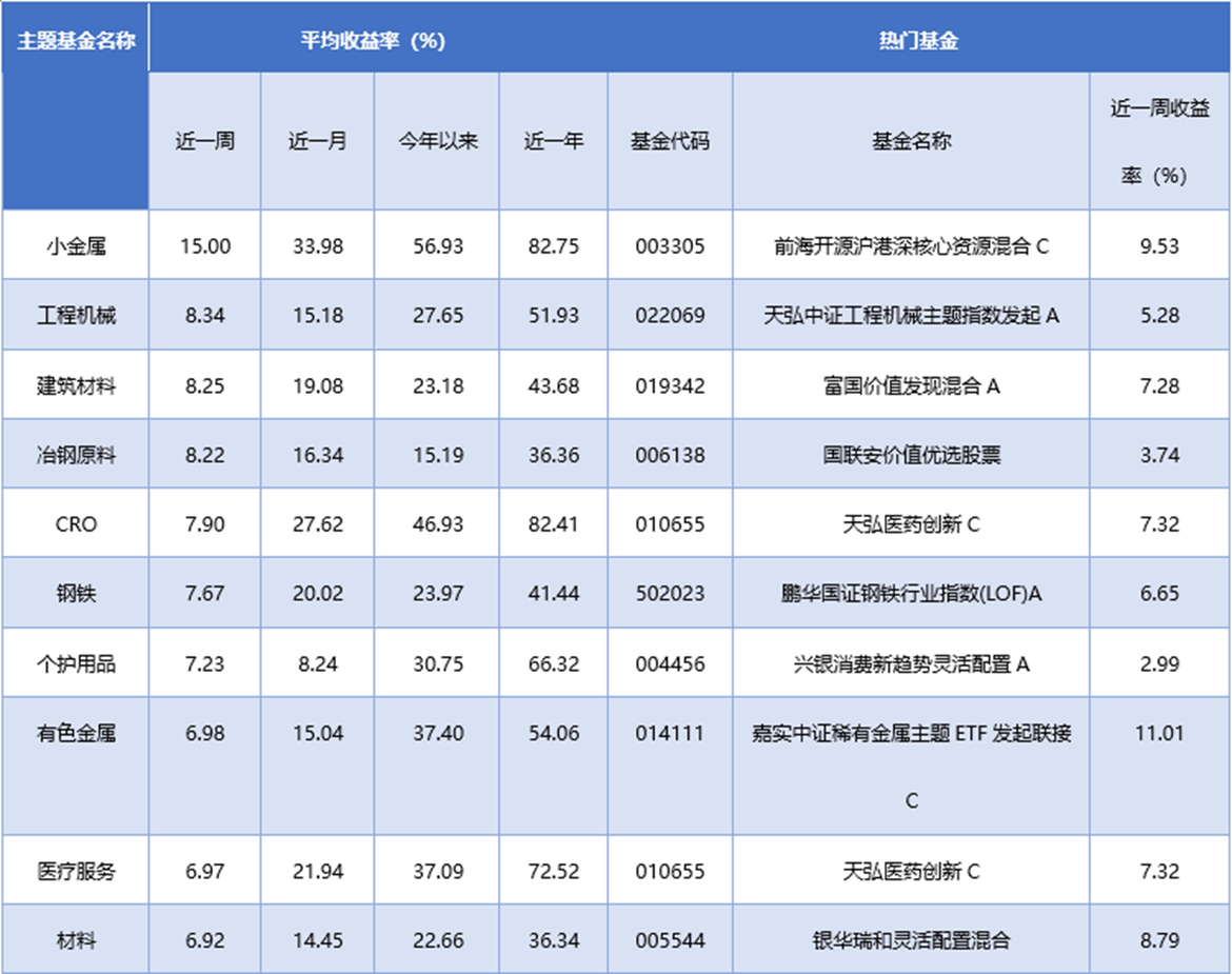 四、 基金主题近一周(7.21-7.25)平均收益率top10