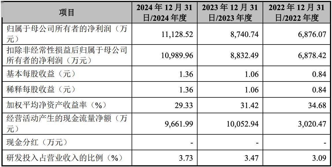 2022年、2023年和2024年,昊创瑞通的营收分别约为5.60亿元、6.72亿元和8.67亿元,净利润分别约6876.07万元、8740.74万元和1.11亿元,扣非后净利润分别约6878.42万元、8832.49万元和1.11亿元。