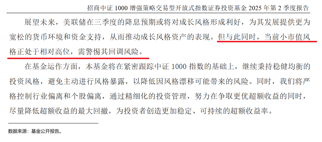 但我看了上述两只优秀增强ETF产品的二季报,两位基金经理在展望未来的部分均提示了中小盘可能的波动风险(如下图所示):