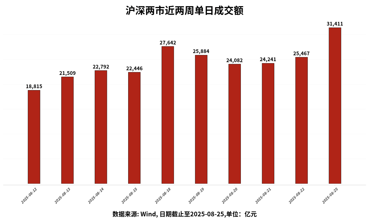 沪深两市成交额为31411亿元人民币,相较上个交易日增加大幅增量。