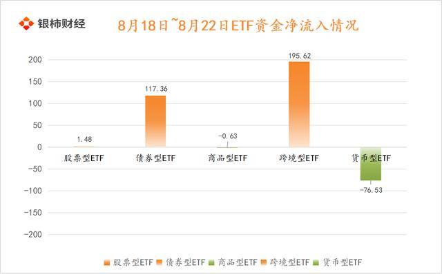 上周ETF市场共有237.3亿元净流入,其中跨境ETF、债券ETF分别获得195.62亿元、117.36亿元资金净流入,股票ETF仅有1.48亿元资金净流入。