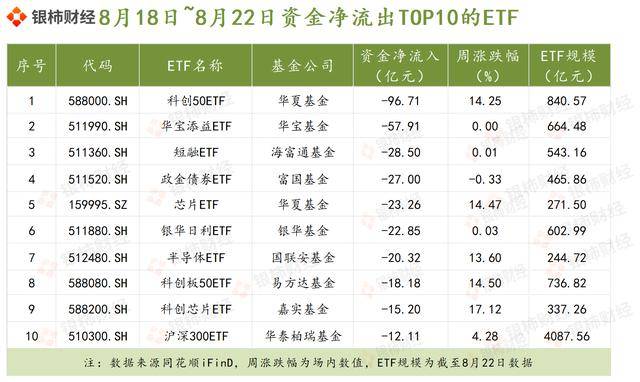 华宝添益ETF是上周唯一一只规模缩水超50亿元的ETF。同花顺iFinD数据显示,截至8月22日,华宝添益ETF年内规模已缩水131.44亿元。