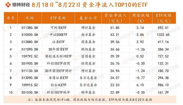 从单只ETF资金净流入/出情况来看,可转债ETF、科创债ETF、国债ETF是上周最“吸金”的债券ETF;投向港股互联网、证券两个板块ETF是最受欢迎的跨境ETF。