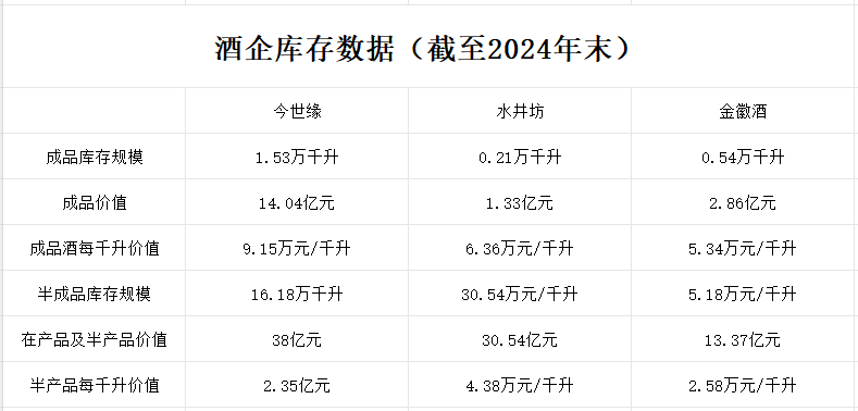 数据统计显示,截至2024年末,水井坊半成品酒每千升价值约为4.38万元,较舍得酒业高出约1.76万元。