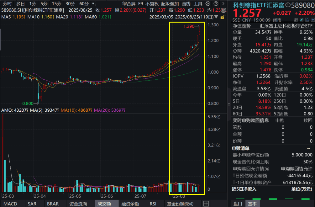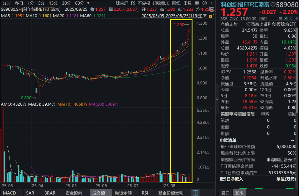 科创板继续“挑大梁”,科创100ETF汇添富(589980)收涨超2%,盘中一度20cm涨停,科创综指ETF汇添富(589080)放量涨2.2%,收盘价创上市以来新高。