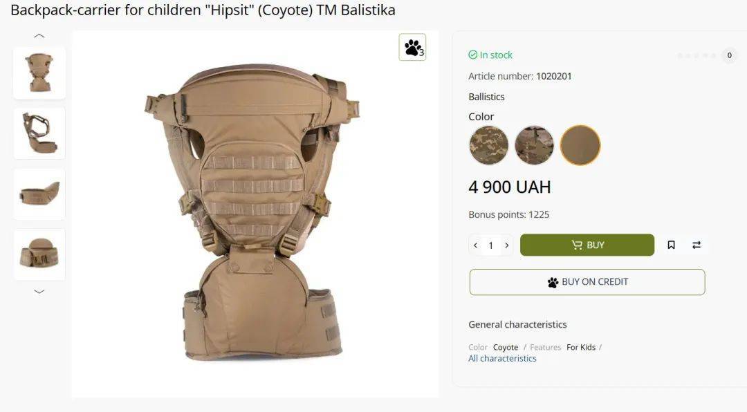 “balistika”是乌克兰一家防弹衣和军事装备制造商,网传视频中出现的婴儿背带外层材质为尼龙,内层为棉,产品功能和制备材料均未提及有防弹用途。