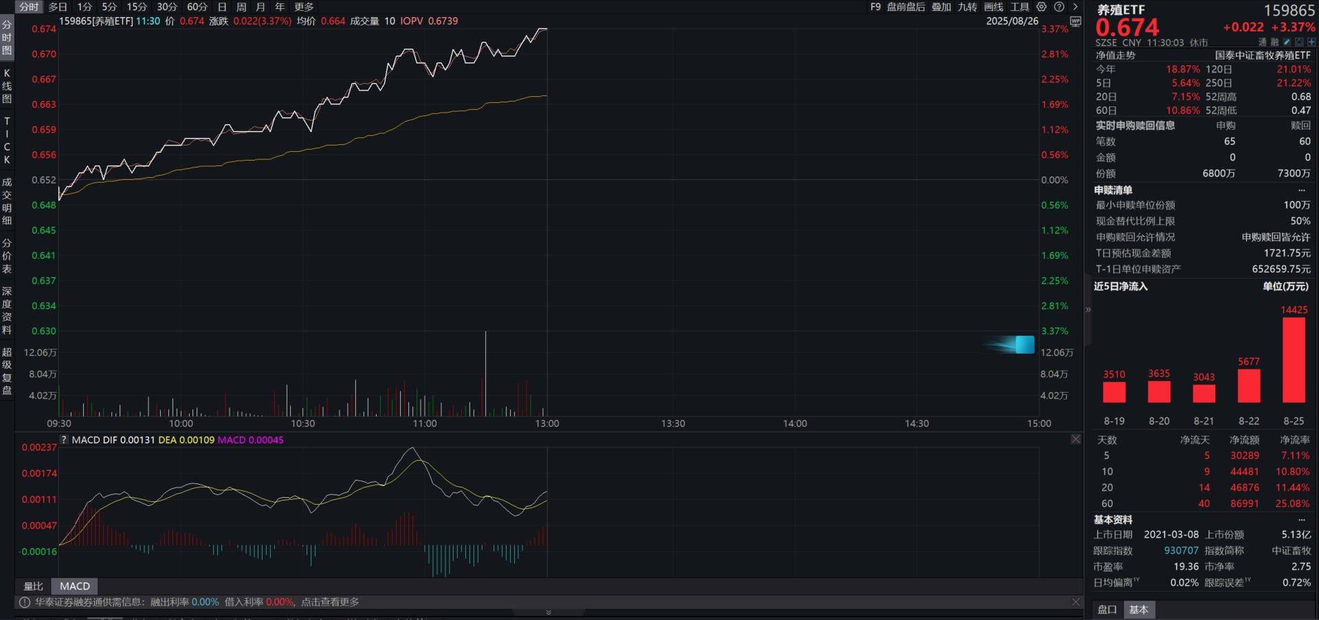 8月26日生猪养殖板块早盘上行,养殖ETF(159865)盘中大涨超3%,资金持续布局,连续5日净流入超3亿元。养殖ETF(159865)含“猪”量高,规模居同类产品第一!