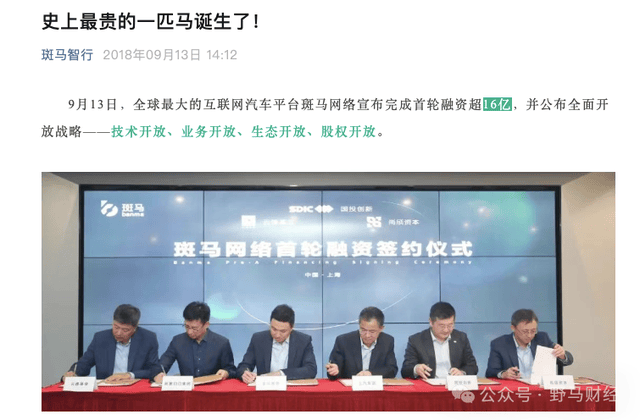在2018年9月的16亿元融资轮次中,斑马智行的公众号上还使用了标题“史上最贵的一匹马诞生了!”来形容这次融资结果。