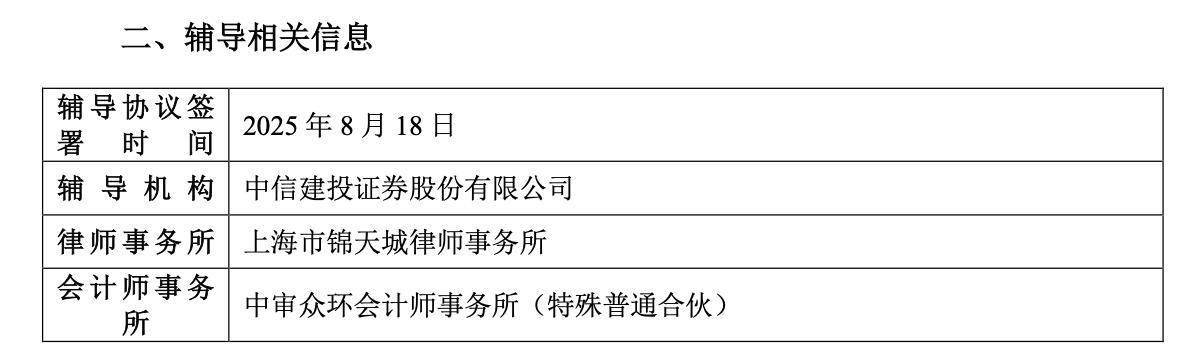 本次IPO的辅导机构为中信建投证券股份有限公司,律师事务所为上海市锦天城律师事务所,会计师事务所为中审众环会计师事务所(特殊普通合伙)。