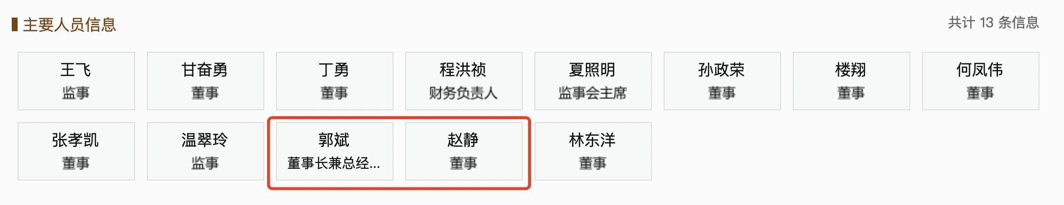 目前,公司控股股东为郭斌,直接及间接控制公司 32.79%股份。郭斌担任董事长兼总经理,妻子赵静担任董事。