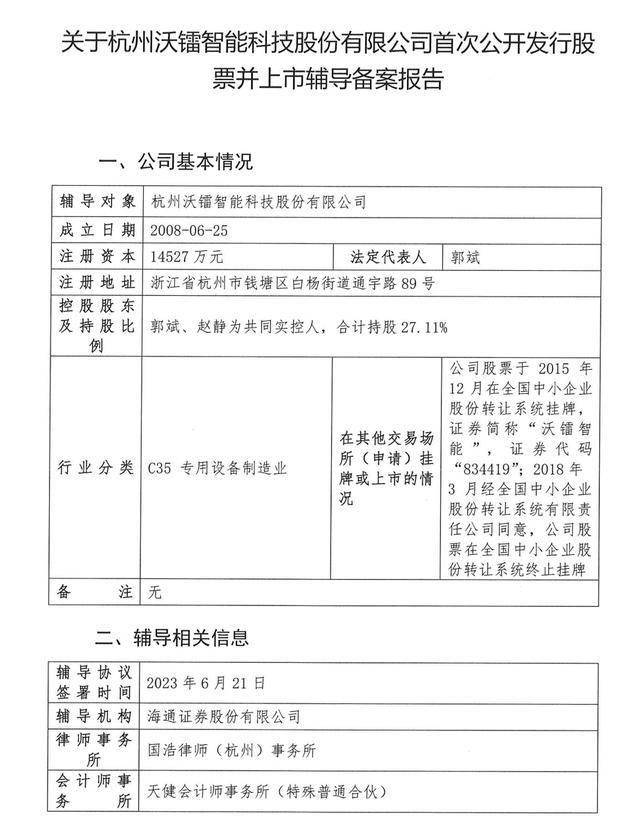 瑞财经 吴文婷8月25日,杭州沃镭智能科技股份有限公司(以下简称“沃镭智能”)启动IPO辅导。