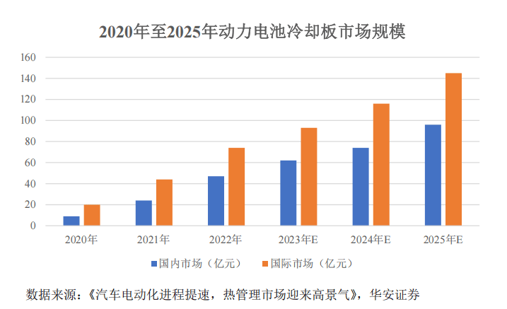 一方面,新能源汽车的持续渗透为纳百川核心产品电池液冷板提供了广阔需求。2022-2024年,国内新能源汽车产销量分别从705.8万辆、688.7万辆跃升至1288.8万辆、1286.6万辆,渗透率从25.6%攀升至40.9%,标志着市场步入成熟增长阶段。政策层面,《节能与新能源汽车技术路线图2.0》明确到2035年电动车和混动车将全面替代燃油车,为液冷板赛道奠定“十年级”增长基础。作为保障动力电池高效安全运行的核心部件,液冷技术因满足不断提升的续航和快充需求,正加速替代传统风冷,持续推动行业扩容。预计2025年国内动力电池液冷板市场规模将达96亿元,较2022年翻倍增长。同时,高压快充普及驱动单车液冷板价值量从约700元向高功率产品升级,叠加新能源车渗透率突破40%,共同构成纳百川持续增长的坚实需求底座。