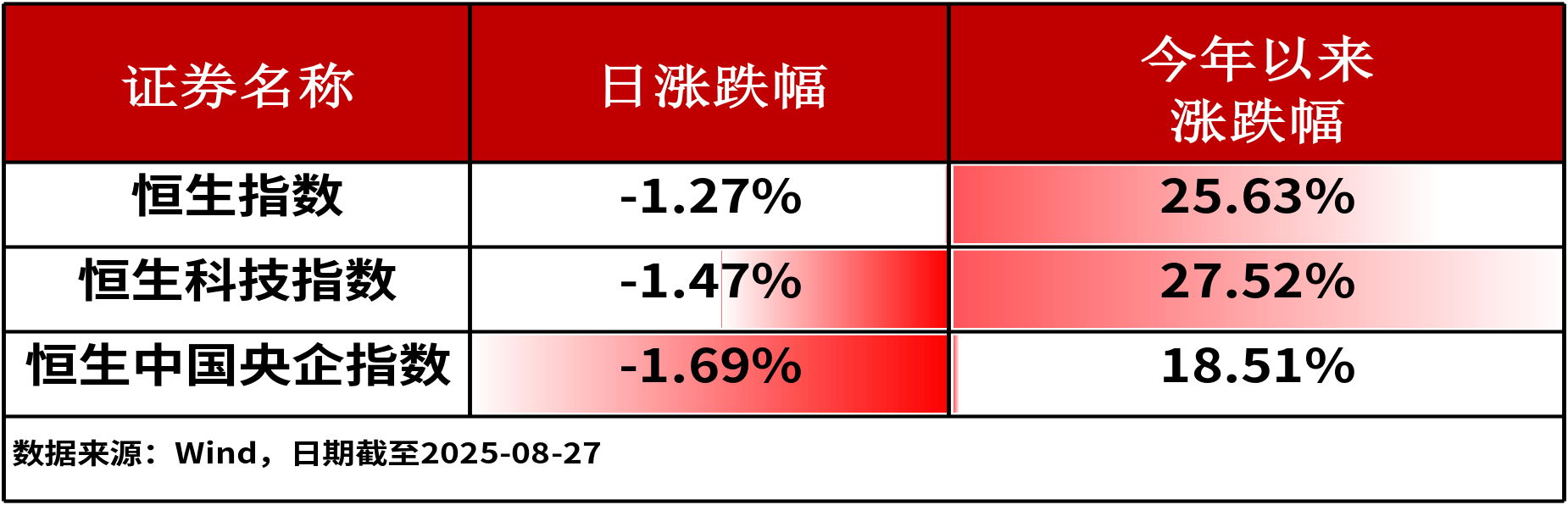 8月27日,港股主流指数集体收跌。其中,恒生指数下跌1.27%,跌幅相对较小。
