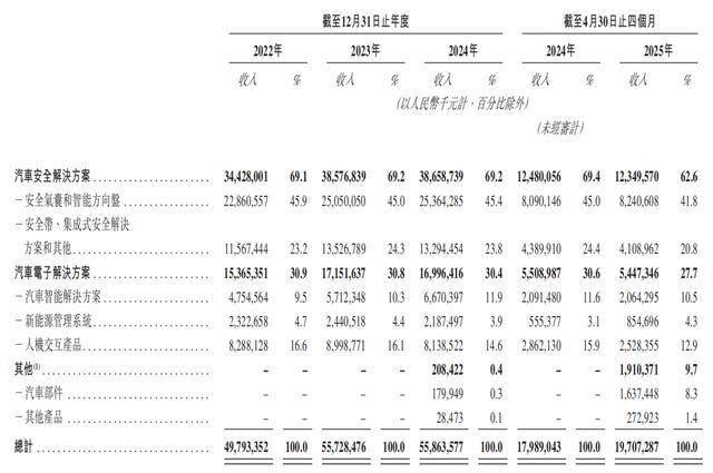 2022年-2024年以及2025年前4个月(简称:报告期),均胜电子营收分别为497.93亿元、557.28亿元、558.64亿元、197.07亿元。