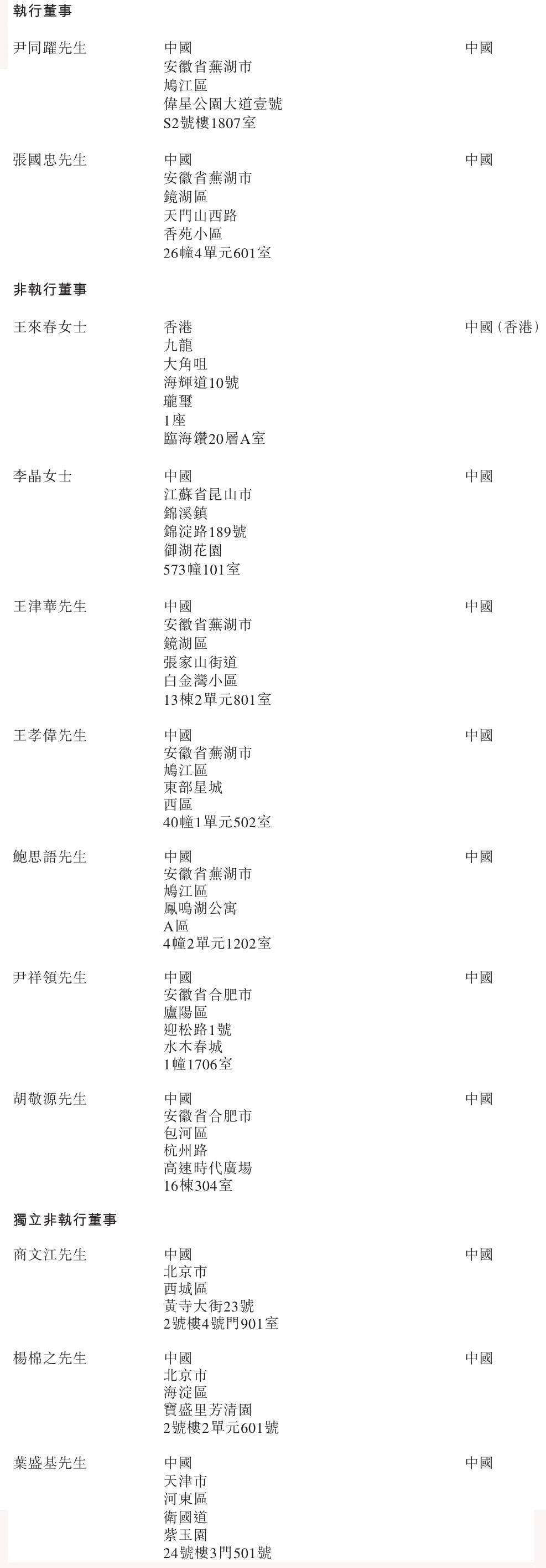 奇瑞汽车执行董事分别为尹同跃、张国忠;非执行董事分别为王来春女士、李晶女士、王津华、王孝伟、鲍思语、尹祥领、胡敬源;独立非执行董事分别为商文江、杨棉之、叶盛基。