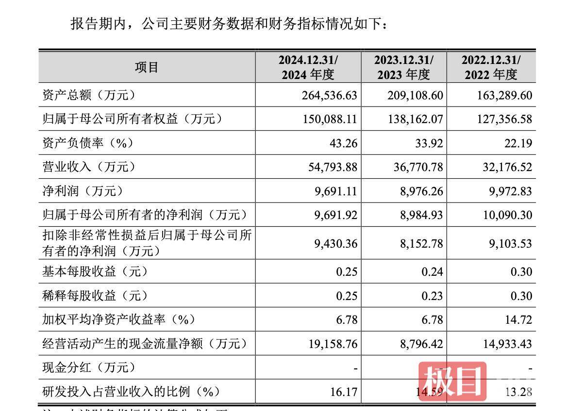 业绩方面,2022年-2024年,恒坤新材实现营业收入3.22亿元、3.68亿元和5.48亿元,同期归母净利润分别为1.01亿元、8984.93万元、9691.92万元,呈现下滑态势。