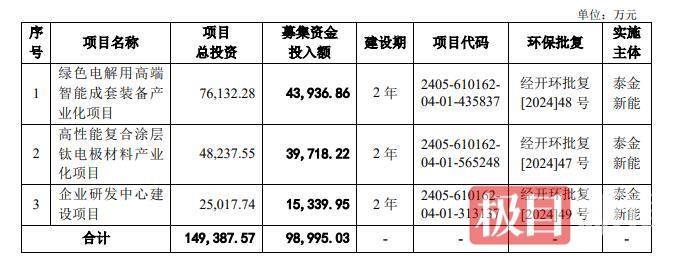 招股书显示,公司是国际上能够提供高性能电子电路铜箔和极薄锂电铜箔生产线整体解决方案的龙头企业,同时也是国内贵金属钛电极复合材料及电子封接玻璃材料的重要研发生产基地。该公司本次拟募集资金98,995.03万元,分别用于绿色电解用高端智能成套装备产业化项目、高性能复合涂层钛电极材料产业化项目、企业研发中心建设项目。