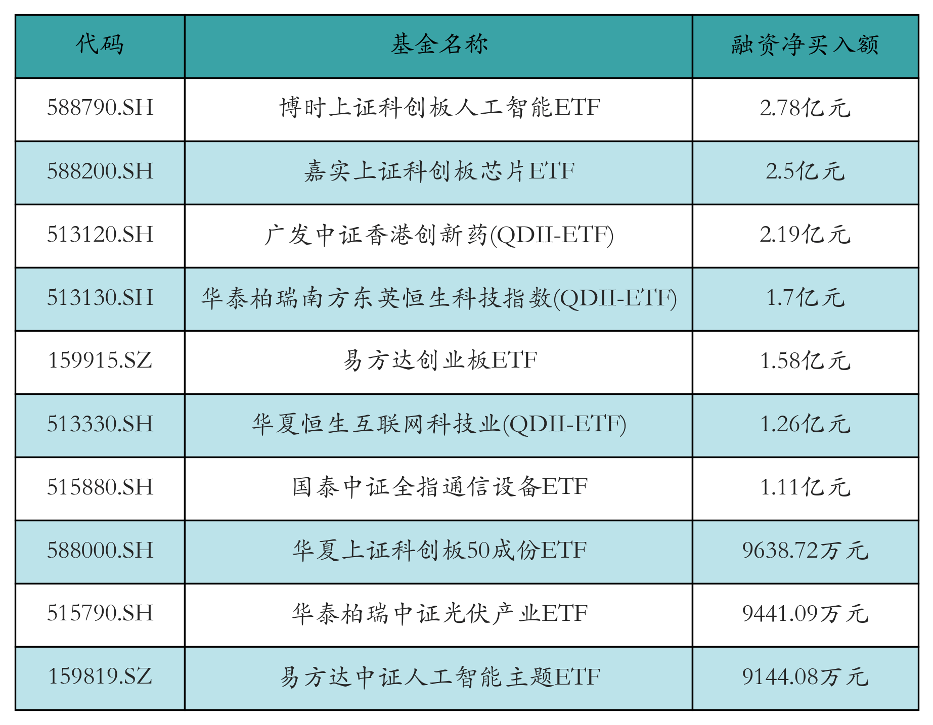 8月28日ETF融资净买入额前三位分别为:博时上证科创板人工智能ETF(2.78亿元)、嘉实上证科创板芯片ETF(2.5亿元)和广发中证香港创新药(QDII-ETF)(2.19亿元),前10具体见下表:
