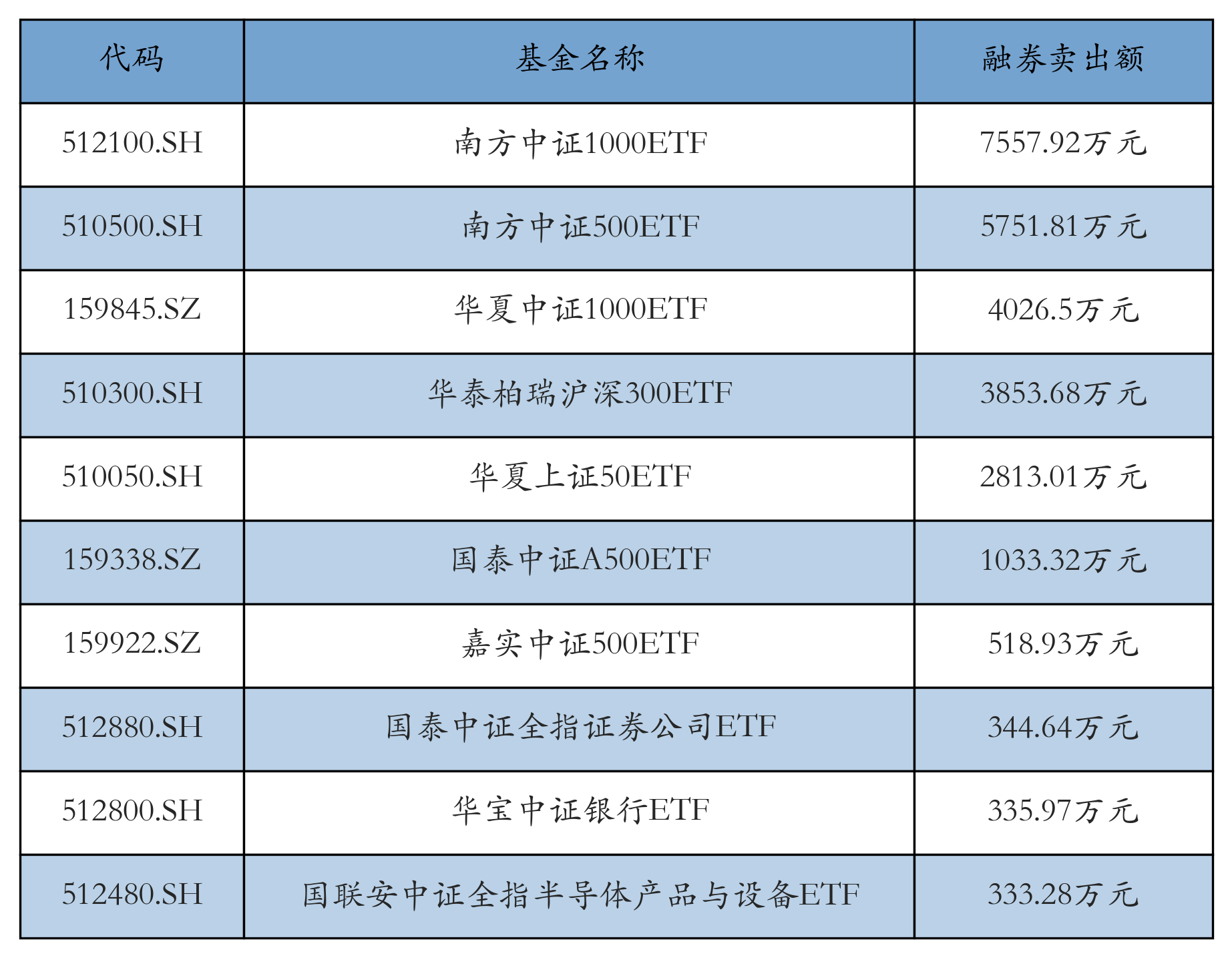 8月28日ETF融券卖出额前三位分别为:南方中证1000ETF(7557.92万元)、南方中证500ETF(5751.81万元)和华夏中证1000ETF(4026.5万元),前10具体见下表: